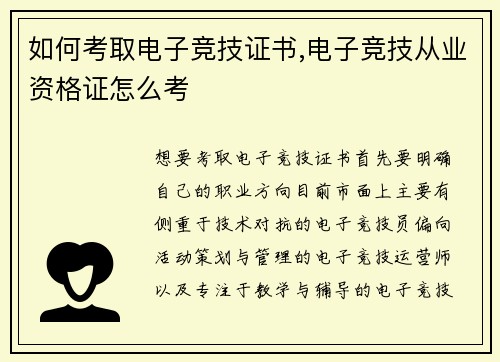 如何考取电子竞技证书,电子竞技从业资格证怎么考